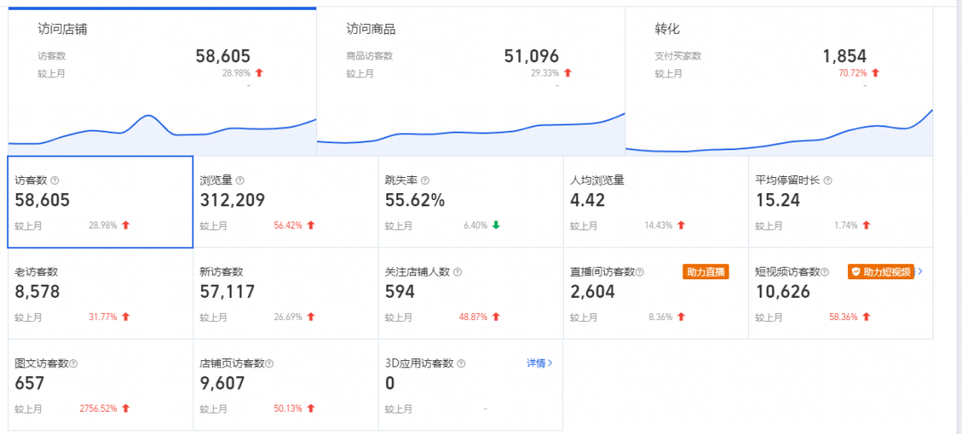 在火蝠電商運(yùn)營人員光灝(花名)的幫助下,通過制作與產(chǎn)品契合的視頻內(nèi)容同淘寶光合平臺推廣結(jié)合的方式,有效地提高了產(chǎn)品的知名度和吸引力,精準(zhǔn)獲客進(jìn)而促進(jìn)銷售額增長,單月成交額超30W+,對比增長140%,同時(shí)訪客數(shù)增長59.23%。