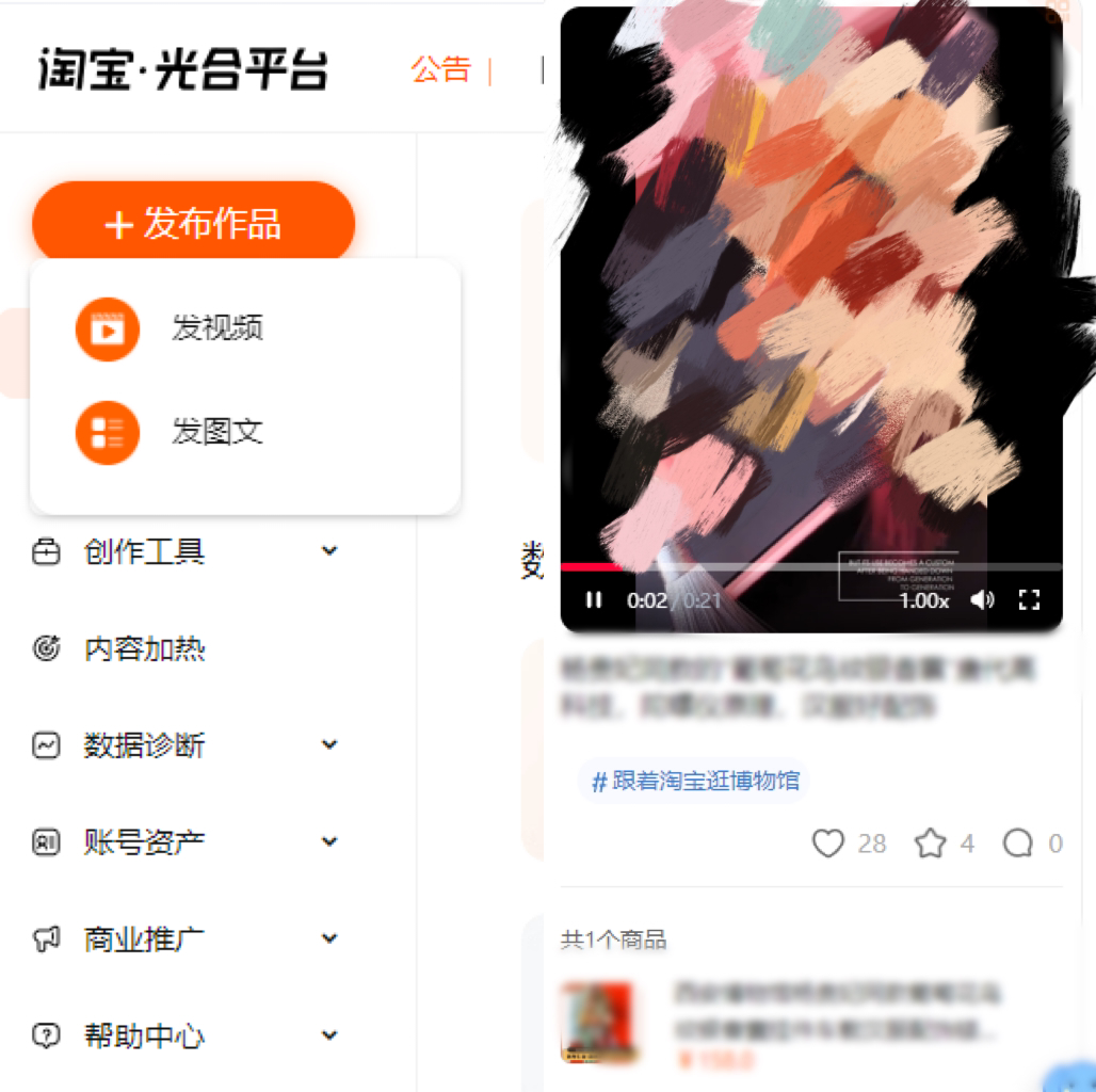 第三步發(fā)布光合平臺:制作完成后的視頻來發(fā)布光合平臺,選擇發(fā)視頻(視頻滿足條件:mp4、mkv、mov格式上傳,720p 以上,文件最大1.5G,時(shí)長15分鐘以下)。編輯其產(chǎn)品相關(guān)的標(biāo)題和文案,添加當(dāng)時(shí)的熱點(diǎn)話題“跟著淘寶逛博物館”,同時(shí)添加對應(yīng)產(chǎn)品的跳轉(zhuǎn)。每周進(jìn)行發(fā)布4-5篇內(nèi)容,來持續(xù)曝光產(chǎn)品獲得對應(yīng)流量,開始店鋪幾乎沒有內(nèi)容流量,發(fā)布引導(dǎo)訪客數(shù)增加2w+。