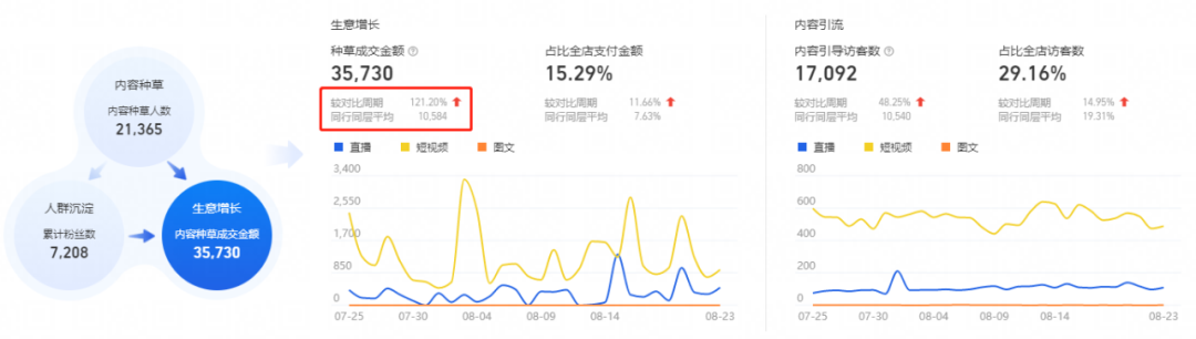 “通過內(nèi)容營銷可以合理地幫助店鋪打開內(nèi)容渠道流量,提升店鋪免費(fèi)流量的獲取能力降低經(jīng)營成本,且提高品牌知名度和曝光度,讓消費(fèi)者跟品牌強(qiáng)互動,拉動內(nèi)容流量持續(xù)增長。我們的店鋪初始內(nèi)容流量幾乎為零,通過該方式高效發(fā)布短視頻,來帶動客戶從認(rèn)知到種草,從而提升單品銷量增長。”光灝向我們介紹。